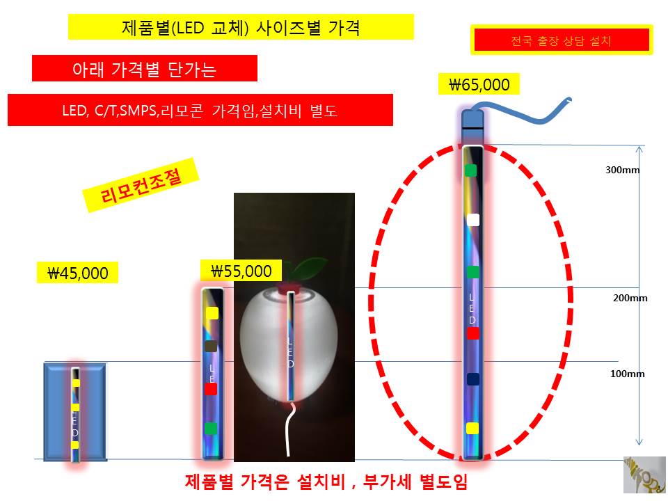 교체는 LED만 교체해드립니다. 리모컨으로 색상 및 칼러 조절