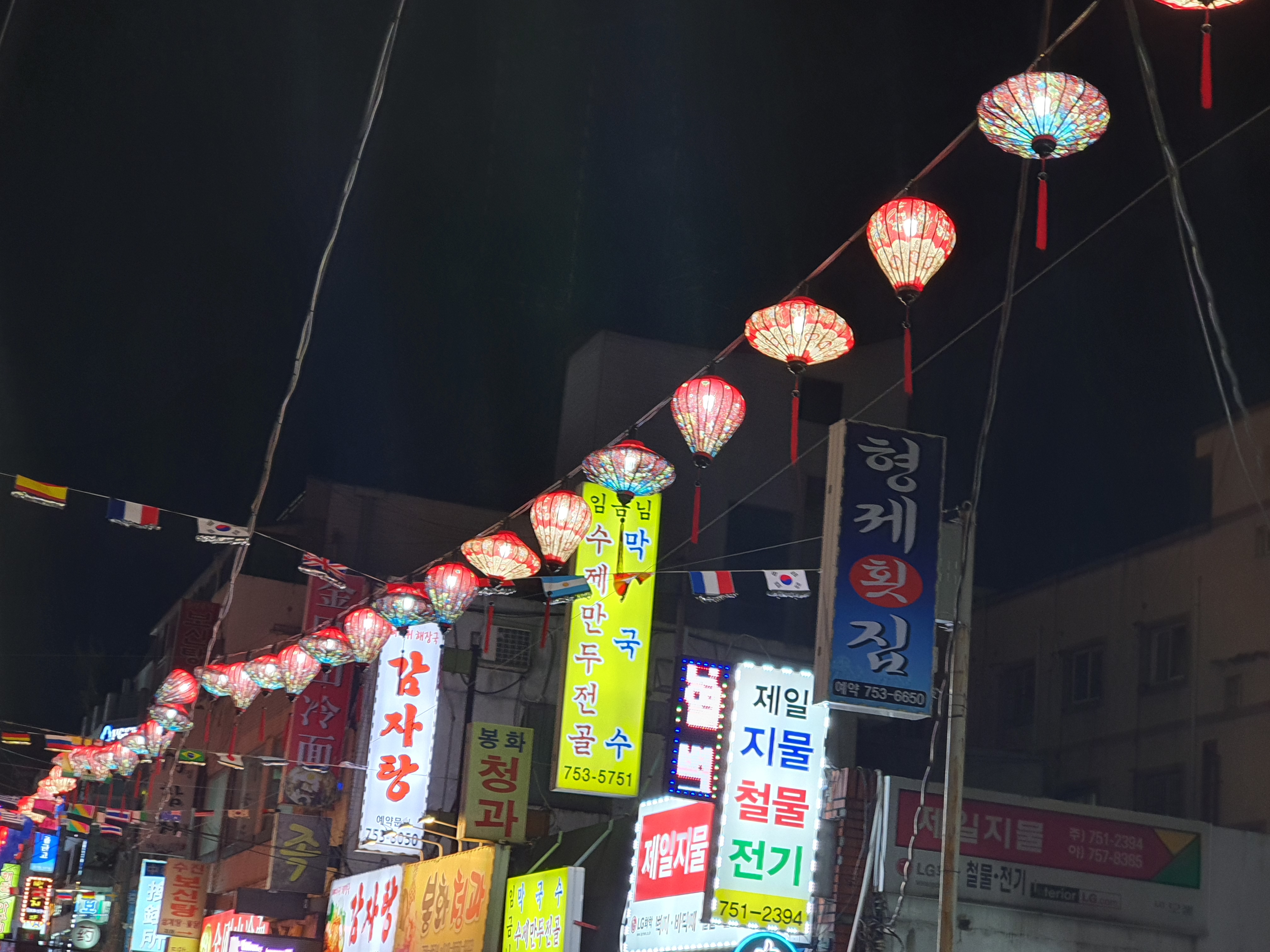 성남시 번성 상인회 골목 상권 활성화 재단에서 설치한청사초롱,홍등,베트남 등 설치사진