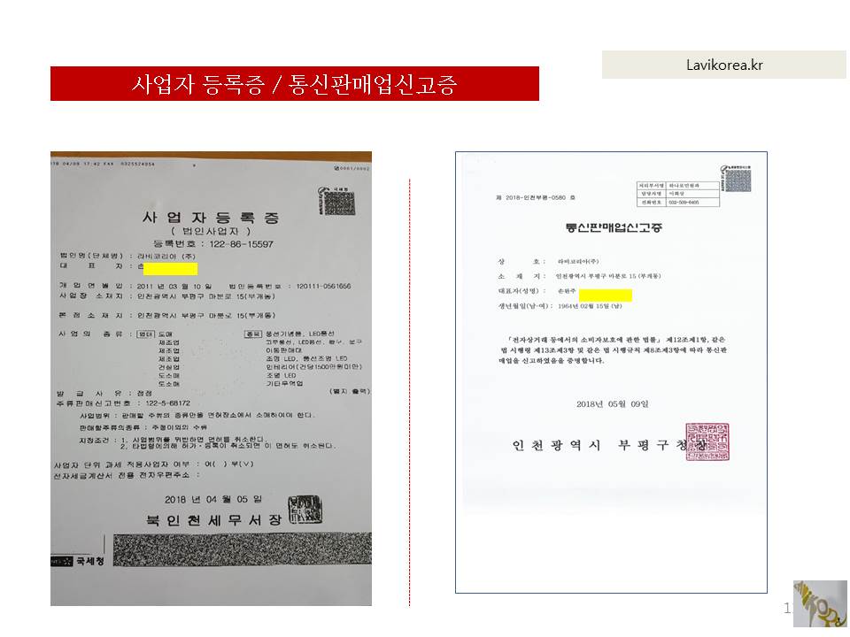 라비코리아(주) | 손완주 | 인천시 부평구 마분로15(부개동) | 사업자 등록번호 : 122-86-15597 | TEL : 032-811-2779 | Mail : lavita08@naver.com | 통신판매신고번호 : 제2018-인천부평-0580호호 | 사이버몰의 이용약관 바로가기