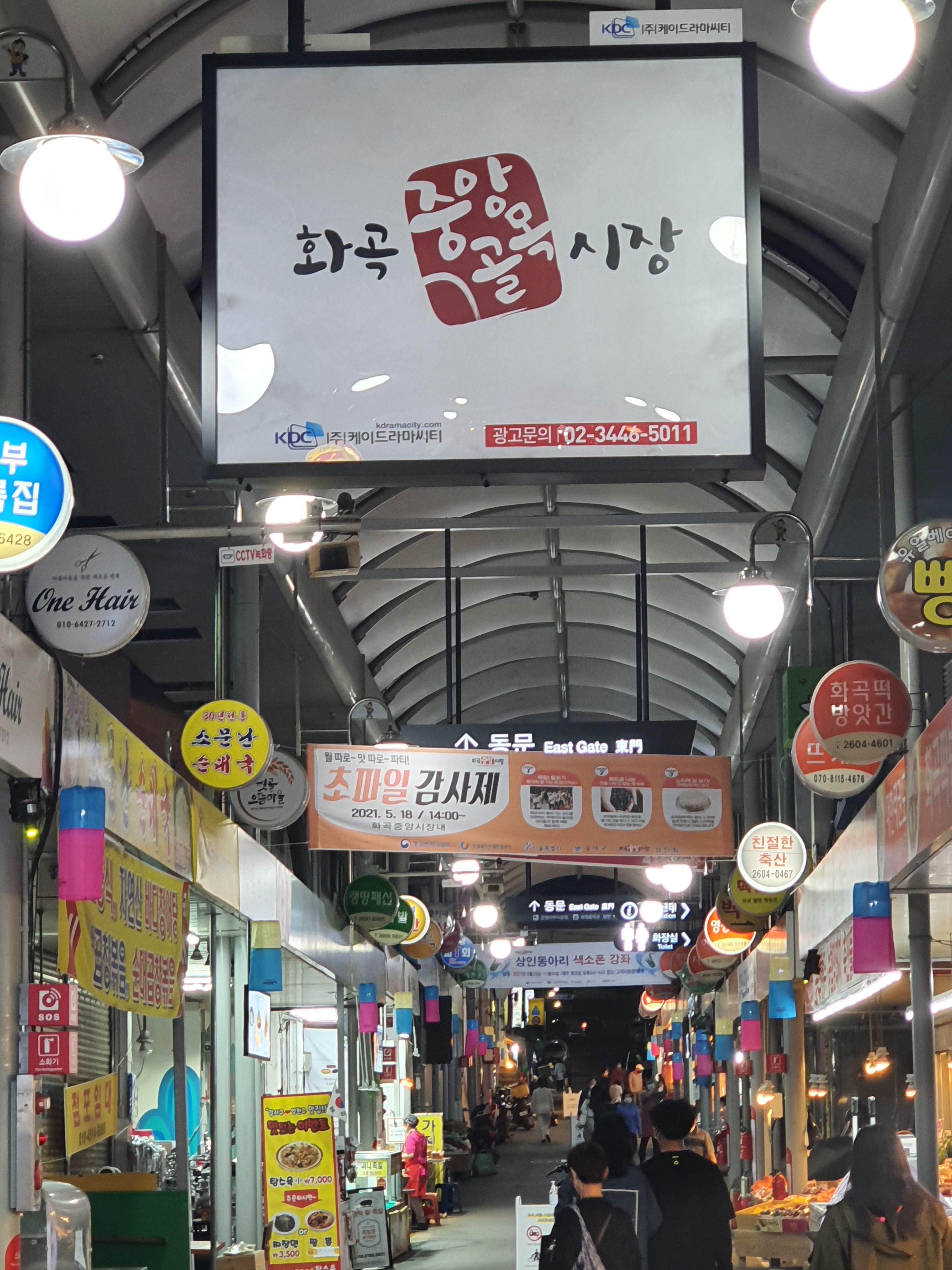 진입로를 통하기전 화곡 중앙 골목 시장 간판이 시선을 잡아주네요.