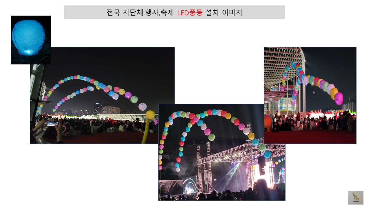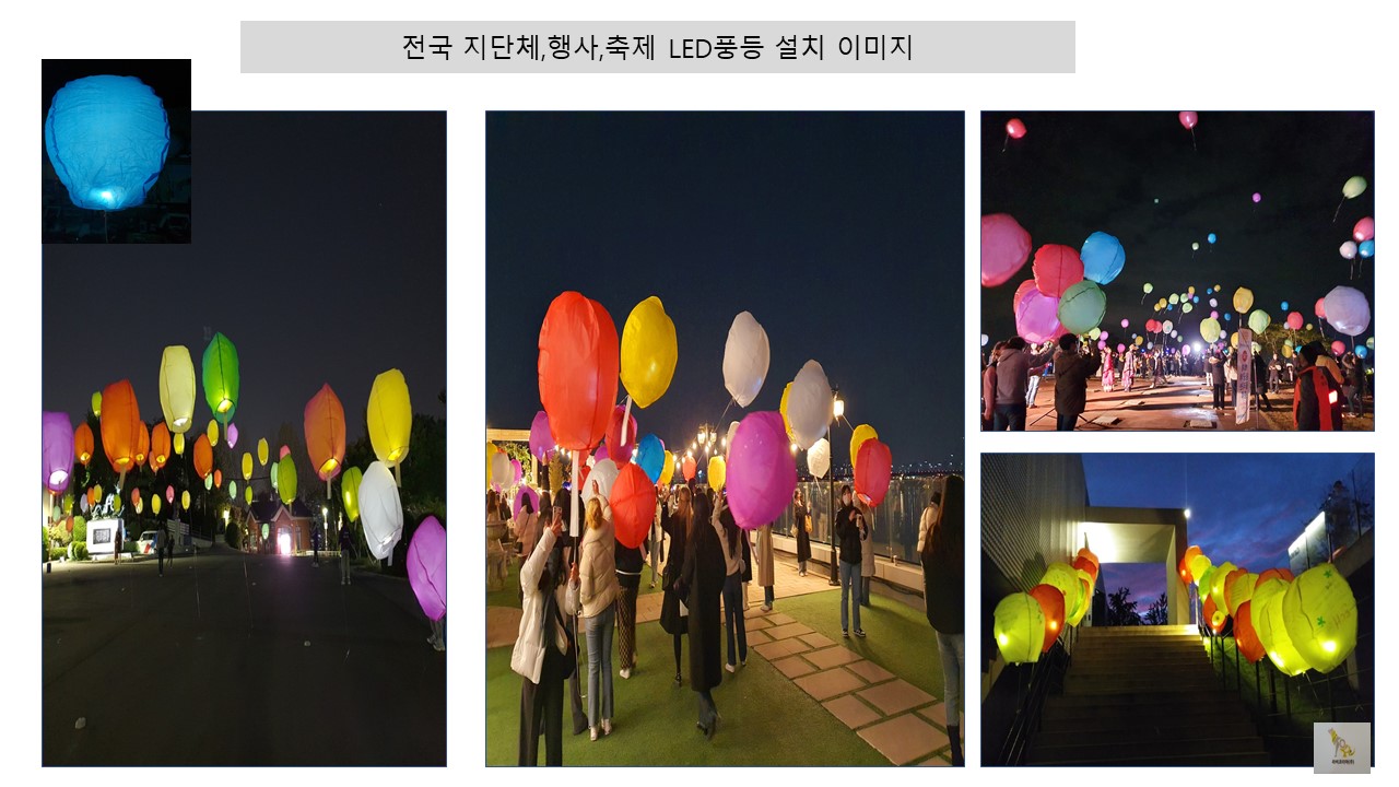 3. LED풍등: 국산 제품 . 화재 위험 없고 , 폭발 위험 없는 LED개 부착 제품, 헬륨 가스 투입