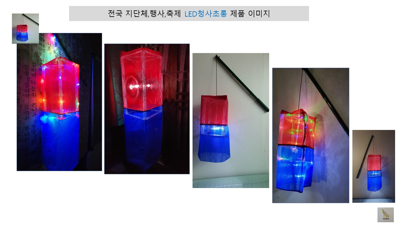 1. LED청사초롱: 국산제품 LED30 cm 포함(양면 가공 바). 배터리식과 전기선 제작 설치