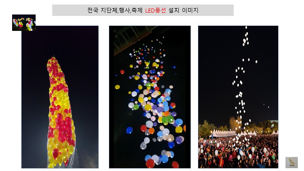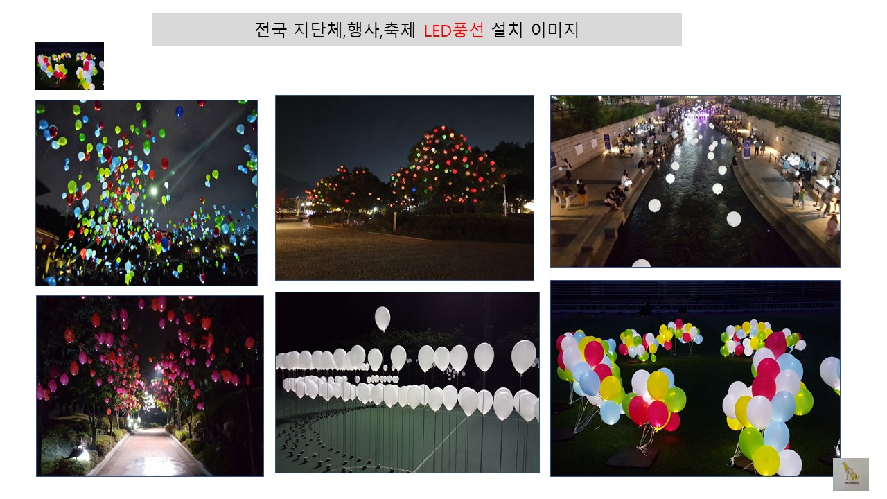 2. LED풍선: 미니 LED내장. 화재 위험 없고, 폭발 위험 없는 LED. 풍선 내장 헬륨가스 투입